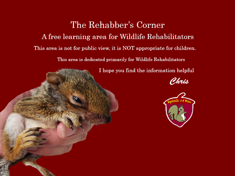 Squirrels and More is proud to offer our free educational information on this site for help with stabilizing sick and orphaned wild animals and our education area for Wildlife Rehabilitators seeking information or help.